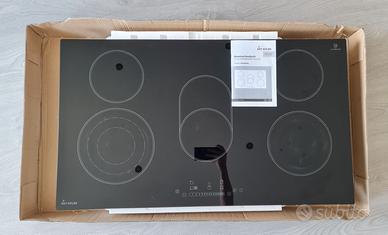 Vendo piano cottura elettrico KKT Kolbe, Nero, Lunghezza 90 cm. 5 Zone di cottura, 9 livelli, usato ma tenuto bene, perfettamente funzionante, vendo per cambio cucina. Elettrico, non induzione, fuori garanzia. Consegna a mano, no spedizioni.