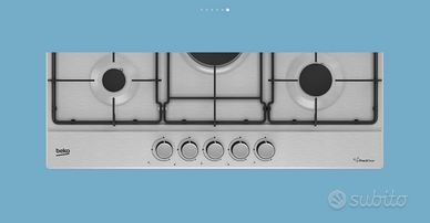 Piano cottura a gas con 5 fuochi Beko (HIAW75224SXE) in Acciaio Inox da 75 cm.