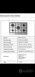 Piano cottura a gas da incasso Master Kitchen, colore acciaio inox, larghezza 75 cm, 5 fuochi, mod. MKHG 75 E XS, mai utilizzato causa sostituzione con piano a induzione, completo di imballaggio originale
