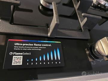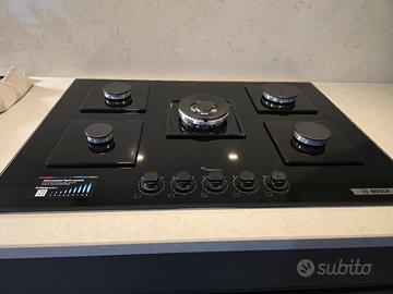 Bosch Piano cottura a gas PPQ7A6I40 in vetro temperato nero da 75 cm - Serie 6. Usato, come nuovo. È in garanzia fino a luglio 2027.