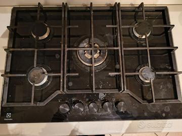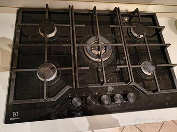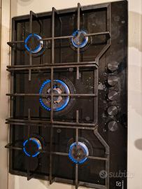 Piano cottura a gas in vetro nero 5 fuochi perfettamente funzionante. Ritiro a mano