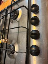 Vendo piano cottura Rex PXL64V. Caratteristiche 50x58cm 4 fuochi gas Bruciatori Fiamma Pura Griglie speciali in estetica nera e coprispartifiamma smaltati neri Sicurezza Sicurgas Accensione integrata nella manopola Estetica acciaio inox Includo tubo allacciamento.