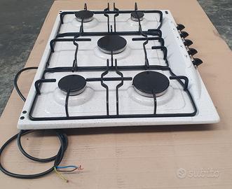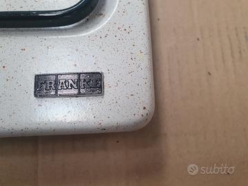 Vendo splendido piano cottura a gas firmato FRANKE, un marchio che è garanzia di qualità e durata nel tempo. Caratterizzato da un’estetica unica con finitura smaltata "puntinata" (effetto granito/sabbia) e manopole nere a contrasto. Perfetto per cucine in stile rustico, shabby chic Configurazione: 5 fuochi con bruciatore centrale ultra-rapido (ideale per wok o cotture veloci). Materiale: Acciaio smaltato facile da pulire e ultra-resistente. Griglie: griglia in finitura nera, solide e stabili. Comandi: Manopole ergonomiche con accensione elettronica integrata. Dimensioni: CM 70x50 - KG 12