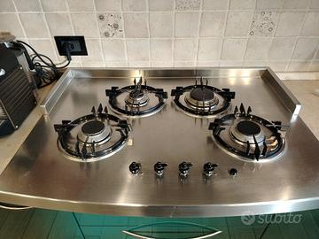 Vendo grande piano cottura a gas usato in buone condizioni, 4 fuochi con tasto accensione gas elettrico. Dimensioni L. 900 P. 610 H. 50.