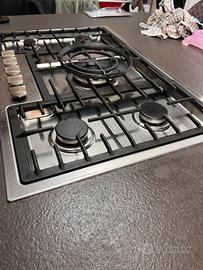 Vendo piano cottura a gas Miele modello KM 2334 in acciaio inox, larghezza 77 cm (perfetto per chi cerca 5 fuochi in uno spazio standard). L’elettrodomestico ha meno di 2 anni di vita ed è in buonissme condizioni . 5 Fuochi con bruciatore Dual-Wok centrale per cotture professionali. Griglie ComfortClean: In ghisa pesante, lavabili comodamente in lavastoviglie. Incluso nel prezzo l'anello adattatore per Wok.