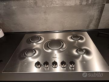 Piano cottura a gas 5 fuochi Whirlpool iXelium acciaio inox (usato, acquistato 6 anni fa). Larghezza 73 cm. Profondità 51 cm. Vendo per sostituzione con piano ad induzione.