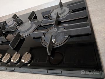 Fornello a 5 fuochi con la miglior tecnologia Hotpoint. La fiamma verticale garantisce una miglior efficienza energetica garantendo minori consumi, tempi di cottura ridotti, una minore dispersione e una migliore distribuzione del calore. Pezzo di design, fantastico elemento d'arredo a differenza dei vecchi e grigi piani cottura in acciaio.