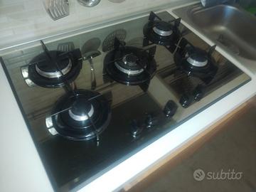 vendo Piano cottura 5 fuochi a gas vetroceramico nero con valvola di sicurezza e sistema di accenzione automatico spargifiamma in acciao smaltato nero. Piano cottura presenta alcune lievi e poco visibili macchie per utilizzo . Solo ritiro a mano il materiale e molto delicato