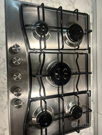 Vendo piano cottura Hotpoint Ariston a 5 fuochi compatibile sia con Metano che Gas Gpl. Non ci sono danni sull’acciaio ma solo segni causati dal normale lavaggio quotidiano. Ripiano di acciaio. Vendo per passaggio ad altro piano cottura.