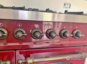 Meraviglioso piano cottura a gas a 6 fuochi e 2 forni elettrici, perfettamente funzionante, come nuovo, usato pochissimo. Ci dispiace moltissimo venderlo ma siamo costretti per passaggio a piano cottura elettrico. Misure 100 x 60. Colore rosso Borgogna. Pagata nuova 6700€!! No spedizioni. Accettiamo solo pagamento tramite bonifico bancario o cash, in quanto ci sono molte truffe in giro. Prezzo poco trattabile in quanto li vale tutti e non possiamo svenderla.