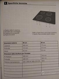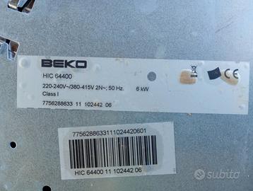 Vendo piano cottura in vetro ceramica 4 fuochi BEKO HIC 64400 da incasso, usato ma perfettamente funzionante, 80 x 60 cm, dotato di libretto di istruzioni