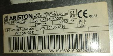 Piano Cottura da incasso Ariston mod. PF 640 AS, n. 4 Fuochi Gas, Griglie in acciaio, finitura colore Avena.