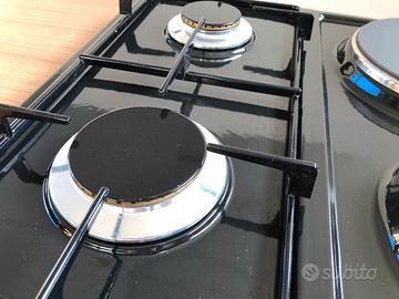 Piano di cottura a 4 gas e 2 piastre elettriche marca Star mai usato, piastra e griglie smaltate nere integro, ci sono dei segni solo sulla pulsantiera come si vede in foto. Si vende nello stato in cui si trova, il piano è sprovvisto di accensione elettrica e valvole di sicurezza. Il prezzo è inteso per ritiro a mano.