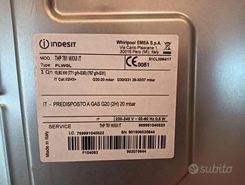 Piano cottura Indesit 5 fuochi, piezoelettrico, utilizzato con gas metano, si vende con associato il suo tubo di allaccio. Si vende per passaggio a piano ad induzione.