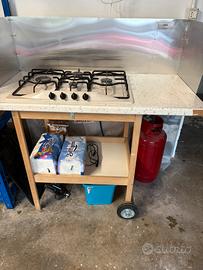 Vendesi piano cottura Franke per giardino senza bombola. Ha due ruote per essere spostato facilmente. Buonissime condizioni.