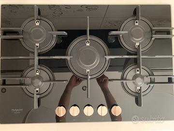 Hotpoint Ariston Piano Cottura A Gas Metano FTGHG 751 D/HA(BK) Finitura Nero Con Griglie In Ghisa da 75cm, il fuoco e diretto sotto le pentole e fa si che arrivano prima a temperatura, con anche altre griglie ghisa e fuochi di ricambio in omaggio inclusi nel prezzo, vendo per passaggio a piano cottura induzione, prezzo poco trattabile.