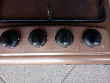 Piano cottura Nardi color Rame a 4 fuochi gas.da incasso Griglie indeformabili con gommini antiscivolo e anti rumore. Accensione elettronica e valvole di sicurezza spegnimento gas accidentale Larghezza: 58, 5 cm, Profondità: 50 cm, Larghezza ritiro su Grosseto o spedizione.