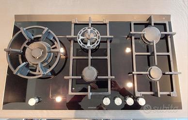 piano cottura a 5 fuochi con griglie. ceramica col. nero