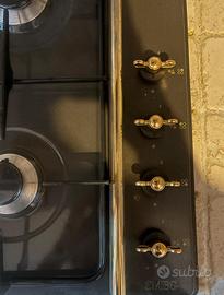 Vendo piano cottura SMEG originale da incasso da 60 cm, colore nero con finiture oro, in condizioni pari al nuovo. Il piano presenta: 4 fuochi a gas di cui 1 fuoco tripla corona (ideale per wok) griglie smaltate nere manopole con finitura oro stile coloniale Usato pochissimo, perfettamente funzionante e senza difetti o segni di usura. Estetica SMEG elegante ideale per cucine classiche o moderne. Venduto per cambio cucina. Ritiro a mano (Roma)