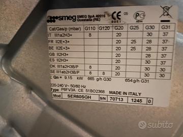 Piano cottura Smeg SER60SGH a gas 4 fuochi, colore acciaio inox. Usato pochissimo per cambio abitazione e passaggio ad induzione.