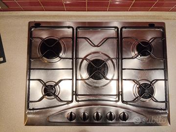 piano cottura in acciaio Whirlpool 5 fuochi come da foto funzionante, larghezza 68, foto su top standard per 4 fuochi