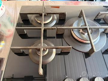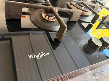 Vendo piano cottura Whirlpool a gas, 5 fuochi, in vetro temperato nero, con griglie in ghisa.