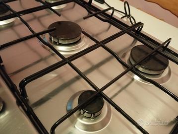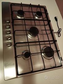 Piano cottura Whirlpool in acciaio inox, cinque fuochi. Misura esternamente circa cm 73x51, mentre la misura interna da incastrare nel piano cucina è di circa cm 47x55.