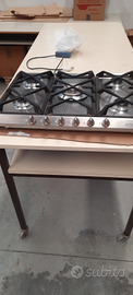 Piano cucina inox smeg 5 fuochi ma 6 manopole perché il centrale ha fuoco grande e piccolissimo a seconda di come si vuole utilizzare. Accensione elettrica, salvavita, completamente funzionante perché rigenerato. Perfetto. Misure 50 x 70