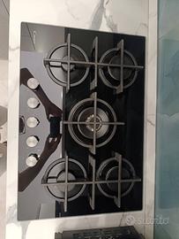 Piano in cottura in vetro temperato nero 5 fuochi 75 cm il piano ha due anni vendo per passaggio a induzione