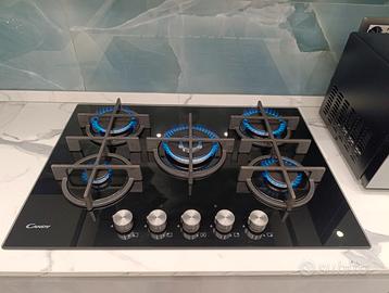 Piano in cottura vetro nero 5 fuochi