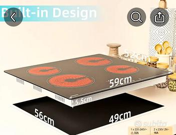 vendo piano induzione nuovo ancora imballato per doppio acquisto sbagliato come si vede in foto ne ho due. vendo a 130 trattabile ho allegato anche la foto con misure