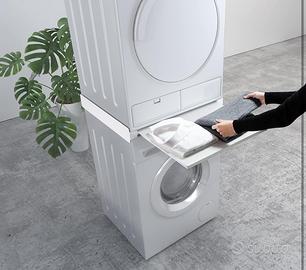 Piano supporto per lavatrice-asciugatrice in alluminio con cassetto colore bisnco.