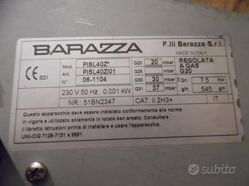 MODELLO INTROVABILE PERCHè FUORI PRODUZIONE,MOLTO BELLO E PARTICOLARE(non come i soliti piani cottura tutti uguali):Piano Cottura Da Incasso USATO POCHI MESI,TENUTO BENE,FUNZIONA PERFETTAMENTE L'UNICO DIFETTO è CHE L'ACCENSIONE ELETTRICA nelle 4 manopole DEL PIANO COTTURA VA SU 3 SU 4 fuochi L'ALTRO Và ACCESO CON ACCENDINO O ACCENDI PIANI COTTURA CON IL PULSANTE o fiammifero e ha qualche graffio leggero sull'acciaio(è come in foto)COMPLETO gli manca solo la spina in fondo al cavo elettrico come si può vedere guardando le foto,IN ACCIAIO INOX E GHISA,Marca BARAZZA(MADE IN ITALY scritto sotto il piano cottura),Modello PISL40Z,Art.:PISL40ZI01,DA 4 FUOCHI,Accensione Elettronica Inclusa Nelle Manopole D'Accensione(và su 3 su 4 l'accensione elettrinica inclusa nelle manopole),230 V,50 Hz,0.001 kW,NR.:51BN2347,CAT. II 2H3+,REGOLATA A GAS G20,Certificato CE(certificazione europea a norma di legge),è COME NELLE FOTO CIOè TENUTO MOLTO BENE MA è USATO,è impolverato,è GIà SMONTATO DALLA CUCINA.