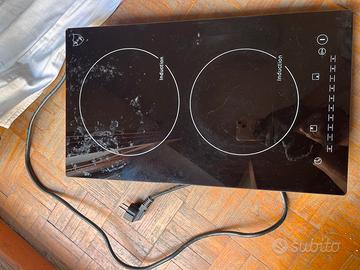 Piastra a induzione con doppio sito cottura; la piastra è funzionante ed utilizzata, ma esteticamente usurata (presenta, se messa in controluce, dei graffi superficiali, e alcune macchie che non abbiamo provato a togliere); abbiamo effettuato una pulizia approssimativa in quanto la piastra è un oggetto che, assieme a tanti altri, vendiamo a seguito dello svuotamento di una casa di un caro venuto meno. Potenza 3400W (220-240 V); Hz 50/60. Anno di produzione 2017. Il prezzo di mercato della piastra nuova è 89€ come consultabile dai siti. Disponibili per qualunque informazione.