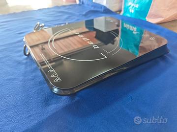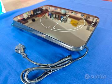 Vendo piastra ad induzione portatile Beper BF 700 dotata di pannello digitale con tasto per la selezione tra 10 potenze da 200 a 2000 W e 10 temperature da 60°C a 240°C. La piastra a induzione è dotata di funzione blocco di sicurezza, spegnimento automatico e protezione contro il surriscaldamento. Piano cottura a induzione ad un fuoco con timer programmabile da 10 minuti a 4 ore. La superficie in cristallo nero lucido garantisce un'eccellente resistenza all'usura e una facile pulizia. Piastra induzione adatta a pentole da 8 a 25cm di diametro, facile da trasportare, ideale per cucinare a casa o all'aperto.