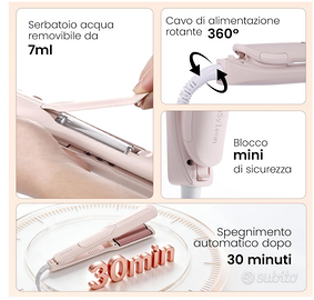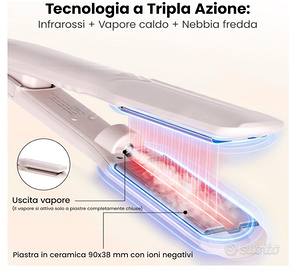 Piastra a Vapore Infrarossa Professionale – Piastre Larghe in Ceramica Capelli Lisci Perfetti Vendo piastra per capelli a vapore con tecnologia a infrarossi, ideale per capelli lunghi, spessi e ricci 💁♀️ Perfetta per ottenere una piega liscia, luminosa e duratura direttamente a casa! 📌 Descrizione prodotto: Piastra professionale con piastre larghe in ceramica (38 mm / 90 mm) progettata per lavorare anche sulle chiome più voluminose. Grazie al vapore e agli infrarossi, liscia i capelli rapidamente riducendo il crespo e proteggendo la fibra capillare ✨ 💡 Caratteristiche principali: ✔️ Piastre larghe in ceramica per capelli lunghi e spessi 💪 ✔️ Tecnologia a infrarossi per una stiratura uniforme ✔️ Sistema a vapore che idrata e protegge i capelli 💧 ✔️ Ioni negativi per maggiore lucentezza e morbidezza ✔️ Temperatura regolabile da 140°C a 220°C 🔥 ✔️ Display LED per controllo preciso ✔️ Spegnimento automatico per sicurezza ⏱️ ✔️ Cavo girevole a 360° per massima comodità 🎯 Perfetta per: Chi ha capelli difficili da gestire (spessi, ricci o crespi) e vuole risultati professionali in poco tempo 💇♀️ 🧳 Comoda e pratica: Dotata di blocco di chiusura per il trasporto, ideale anche da portare in viaggio ✈️ 📦 Condizioni: Nuovo 📍 Consegna: Spedizione veloce