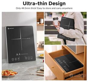【2000W Piastra ad induzione con design ultra-sottile】Con altezza di 44,5 mm e aspetto elegante, il piano cottura induzione portatile AMZCHEF è un partner utile durante la cottura e una buona decorazione per la cucina.È leggero e può essere facilmente messo in un armadietto e portato ovunque. La funzione di tempo di 3 ore e la serratura di sicurezza sono inclusi.