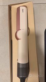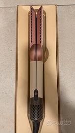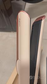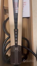 Dyson Airstrait™ non è una piastra classica: è la "piastra-asciugacapelli" di Dyson che asciuga e liscia i capelli contemporaneamente, portandoli da bagnati a lisci senza usare lamine calde  Come funziona: aria, non lamine calde • Nessuna lamina calda, nessun danno da calore¹: usa un flusso d’aria ad alta pressione per lisciare durante l’asciugatura, senza piastre roventi • Temperatura controllata: l’aria viene riscaldata con precisione e diffusa in modo uniforme sulle ciocche • Flusso d’aria a 45°: proiettato verso il basso per creare la tensione necessaria ad allineare i capelli, con meno danni e rotture²  Perché da bagnato Quando i capelli sono bagnati i legami a idrogeno sono più duttili, quindi è più facile modellarli in una nuova forma preservandone forza e riducendo la rottura. Usare temperature più basse e ripristinare i legami da bagnati protegge la struttura interna: i capelli riflettono più luce e risultano più luminosi  Cosa fa • Styling da bagnato a asciutto: passi da capelli tamponati a look finito con un solo strumento • Effetto liscio naturale: riduce crespo e baby hair per una finitura liscia e brillante con volume naturale • Risparmio di tempo: unisce asciugatura + styling, così salti un passaggio rispetto a phon + piastra tradizionale  Modalità di utilizzo 1. Tampona i capelli dopo il lavaggio 2. Asciuga le radici con le apposite barre aperte 3. Chiudi i bracci e dividi in sezioni per lisciare da bagnato ad asciutto 4. Usa il getto freddo per fissare la piega  Ha anche una modalità “asciutto” per ritocchi e finitura su capelli già asciutti