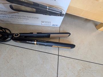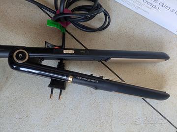 Piastra "bellissima imetec steam ceramic and keratin". Usata veramente poco, vendo per inutilizzo e problemi di spazio in casa. I benefici della tecnologia a vapore: - Liscio protetto e senza danni: il vapore protegge i capelli dal passaggio delle piastre calde evitando lo shock termico e la rottura delle fibre capillari. - Liscio luminoso e morbido: il vapore distende le fibre capillari e preserva la corretta idratazione dei capelli. - Liscio perfetto a lunga durata: grazie al vapore i capelli sono in equilibrio idrico, non assorbono umidità e quindi non si increspano. Ideale per capelli ricci, crespi o difficili da disciplinare. Puoi infatti scegliere 3 livelli di temperatura tra 170°C e i 230°C, secondo le tue esigenze. La tecnologia Thermo Control mantiene la temperatura costante e uniforme durante l’utilizzo nel rispetto dei tuoi capelli. Le piastre lunghe 110 mm sono flessibili e si adattano perfettamente alla ciocca per uno styling senza sforzo. Il design di questa piastra lisciante si presta benissimo a definire i look mossi del momento, perché non avrai difficoltà a lavorare le ciocche partendo dalla radice. La piastra è pronta all’uso in pochi istanti e se la dimentichi accesa nessun problema, perché si spegne da sola dopo 60 minuti. Ti basterà riempire una volta il serbatoio per fare uno styling completo su capelli medio/lunghi senza interruzioni. Comoda per l’utilizzo di tutti i giorni.