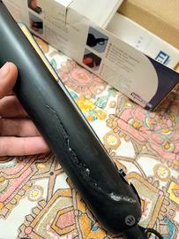 Vendo per inutilizzo, piastra lisciante per capelli, marca Termozeta.Perfettamente funzionante ; unico difetto crepa riparata nella parte sottostante dell' impugnatura.Con scatola originale.