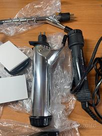 Piastra capelli con diversi cambi in base all’effetto che si vuole avere. Usata pochissimo. E solo alcuni di questi, molti mai provati. Facile da usare e molto comoda per ogni tipo di acconciatura 🥰 ha la sua pochette originale.