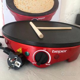 Piastra anti aderente ø 30cm, temperatura regolabile, luce di raggiungimento temperatura, paletta stendi crêpes in legno inclusa. Perfetta per cucinare crêpes, pancake e piadine in modo semplice.