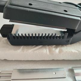 piastra stirante e frisè,fornita di 4 coppie di piatti intercambiabili.come di vede in foto manca un dente del pettinino integrato.