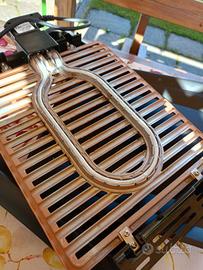 composta da 3 elementi, griglia con resistenza con termostato variabile, bacinella raccogli unto, contenitore placca.