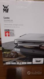 Come da foto vendo questa meravigliosa piastra a contatto Lono della WMF. È una griglia elettrica ad alte prestazioni che offre delizie di ogni tipo:dal pane da toast alle verdure e la carne. Può essere usata in posizione aperta per pasti conviviali al tavolo o chiusa come piastra a contatto.La temperatura è regolabile e ha una potenza dai 1800 ai 2100 W. Elegante è il suo design con un tocco moderno. Conservata nella sua confezione originale,mai aperta.