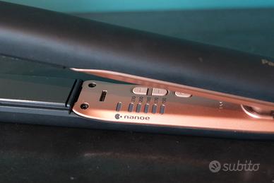 Piastra lisciante in ceramica Panasonic tecnologia Nanoe (tecnologia per idratazione e riduzione dell'elettricità statica). Cinque temperature possibili (150-170-180-200-230 °C), pronta in 30 secondi, radiatore stabile e distribuzione del calore uniforme. Incluso scovolino per pulizia delle fessure adibite alla tecnologia Nanoe. Cavo girevole e blocco da viaggio. Usata due volte, senza difetti, funziona in maniera ottimale ed è ideale per i capelli che tendono a gonfiarsi in quanto riduce l'elettricità statica, vendo perchè preferisco tenere i miei capelli naturali e non la userei molto. Prezzo di acquisto 129,99€, prezzo di vendita 80€. Costo di spedizione a carico dell'acquirente.