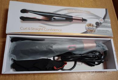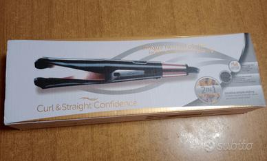 Piastra 2 in 1 per lisciare e arricciare i capelli. Rivestimento in ceramica di alta qualità arricchito con tormalina antistatica. Display digitale con 5 impostazioni di temperatura da 150 a 230 °C. Tempo di riscaldamento di 30 secondi.
