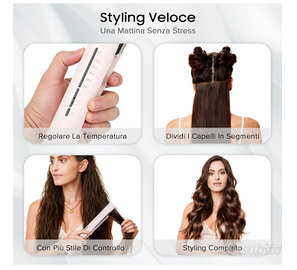 Vendo Piastra lisciante e ferro arriccia capelli 2 in 1 31mm in ceramica . Nuovo con scatola. Piastra lisciante e arriciante con 5 livelli di temperatura da 140 gradi a 220 gradi . Versatile la parte in ceramica misura 31 mm . Adatto a capelli lunghi e corti . Tecnologia agli ioni di ceramica . Si scalda in 30 secondi . 5 livelli di temperatura regolabili e visibili dallo schermo led . Chiusura a scorrimento dal basso , per avere la piastra compatta . Massima sicurezza per i capelli rendendoli sani e brillanti . Con possibilità di creare capelli lisci o ricci in base all'esigenza.