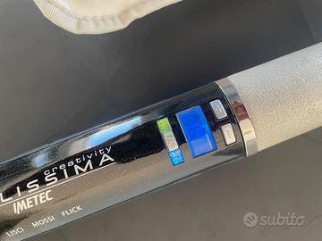 Piastra per capelli "Bellissima creativity" della Imetec. Piastra in ceramica, completa di custodia termoprotettiva. Display con indicazione temperatura max 200 gradi.