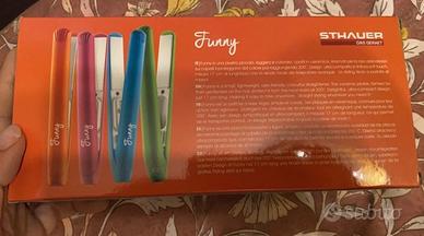 Mini piastra per capelli da viaggio con filo, completa di confezione originale e copri piastra trasparente. Misura 17 cm e raggiunge 200 ^ ma protegge i capelli poiché dotata di piastre in ceramica.